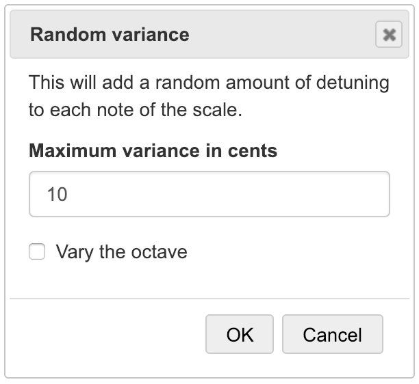 Applies a random detuning of each note in the scale. If the checkbox is ticked, this will also detune the octave. If unticked, the octave will remain unchanged.