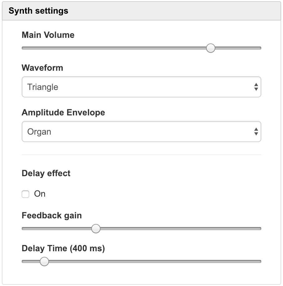 The synth has the following options: